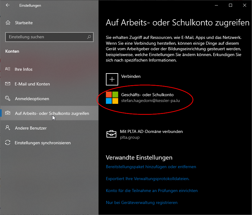 - in den Konteneinstellung den Punkt "Arbeits- oder Schulkonto" öffnen.