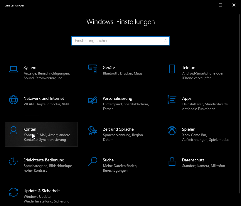 - Die Windows-Einstellungen öffnen und das Untermenü "Konten" aufrufen